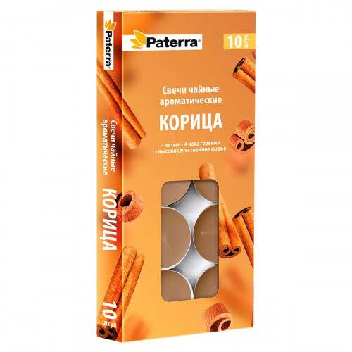 Свечи чайные в гильзе, литые, аромат корицы 10шт/уп 50уп/кор