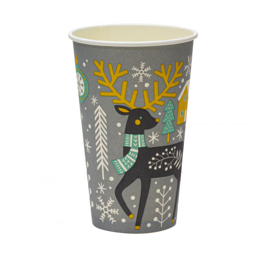 Стакан бумажный 400мл для горячего Снежное рождество 50шт/уп 20уп(1000шт)/кор