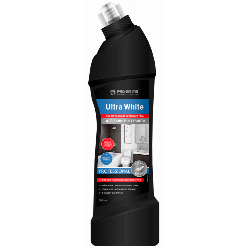 1586-075, Ultra White, Универсальный чистящий гель для ванной и туалета "Свежесть", 0,75л, 14шт/кор