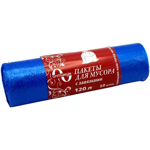 Мешки мусорные 120л (20) Голубые с завязками в рулонах "Оптимум" по 10шт/рул 36рул/уп