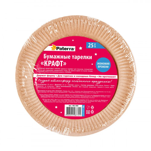 Тарелка картон крафт D230мм PATERRA 25шт/уп 20уп/кор