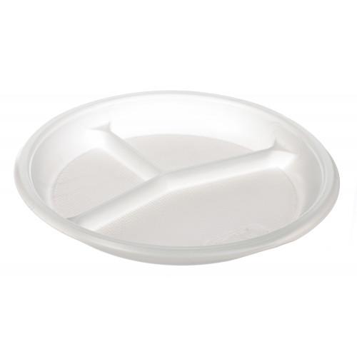 Тарелка пластиковая d 205мм 3-х секционная белая PS 100шт/уп 16уп/кор