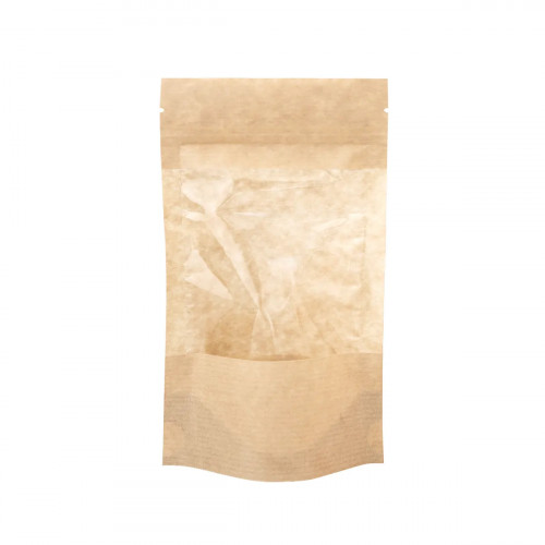 Пакет дой-пак бумажный/СРР с замком ЗИП-ЛОК 100*185+(30+30) с окном 90мм 100шт/уп 700шт/уп