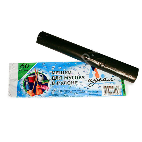 Мешки мусорные 60л 60*70 (25 в рулоне) "Идеал" (черные) 40уп/кор