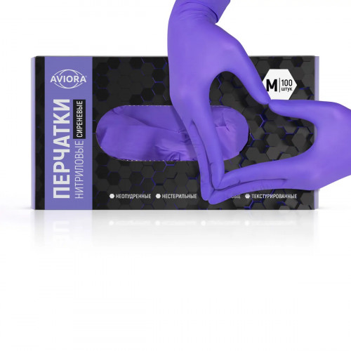 Перчатки нитриловые СИРЕНЕВЫЕ, размер M, AVIORA 100шт/уп 10уп/кор